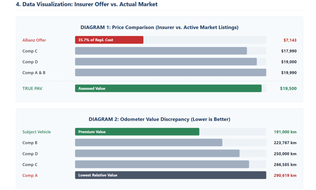 • We Bypass the Algorithms: We don’t use the same flawed software the insurers do. We manually evaluate the live market to find direct comparables, adjusting mathematically for kilometres, condition, and trim levels to find the true market replacement value.